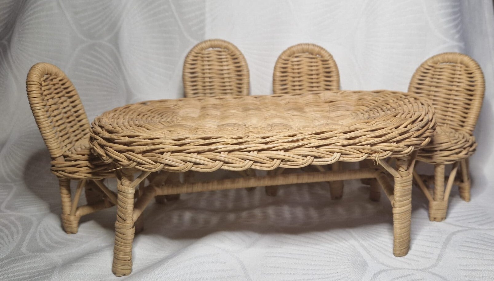 V - Rieten miniatuur eettafel + 4 stoelen