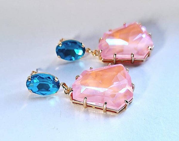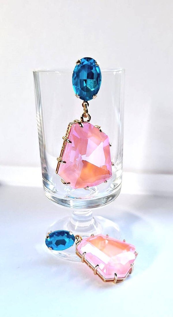 glas facet turkoois + fluo roze