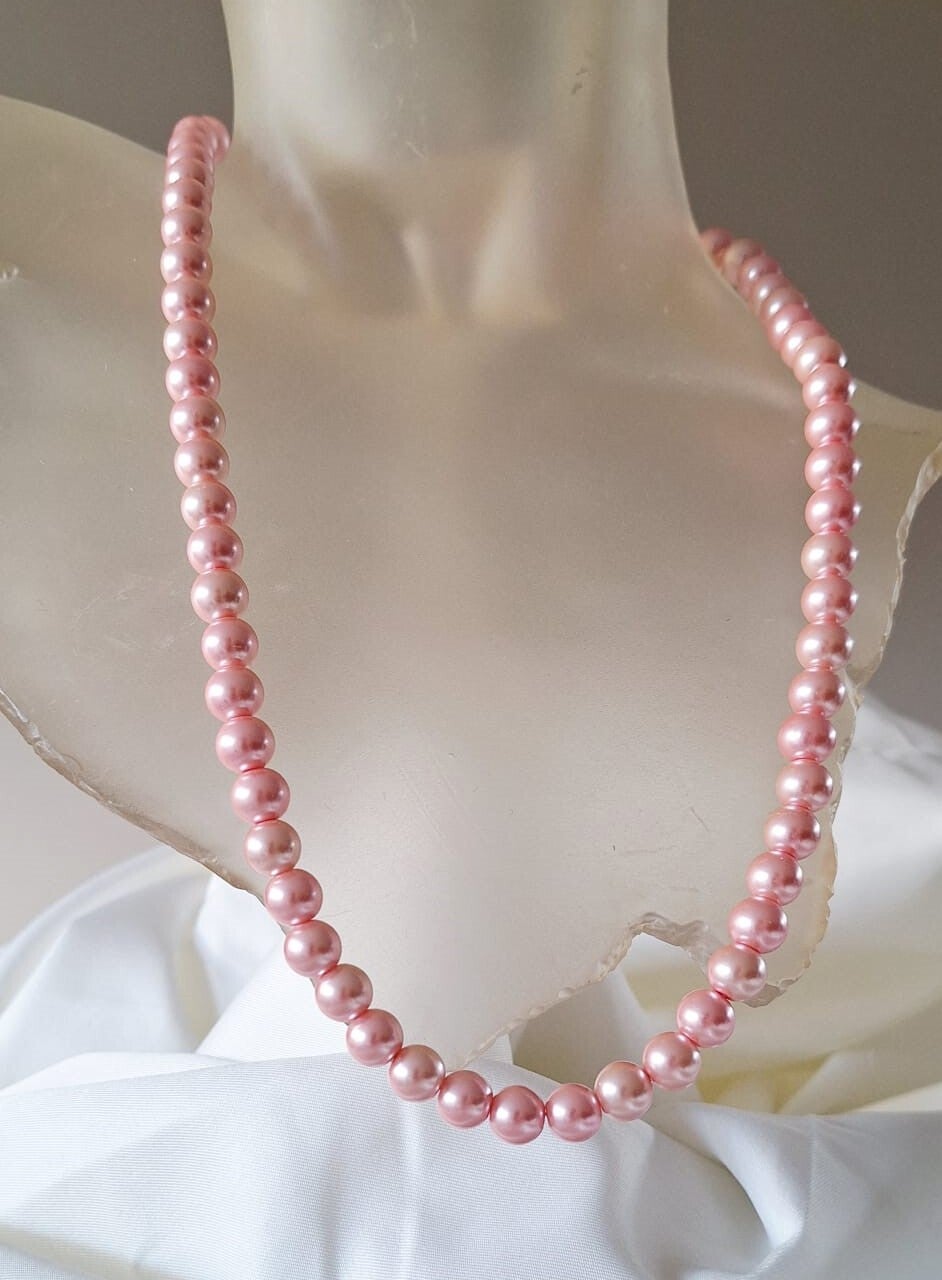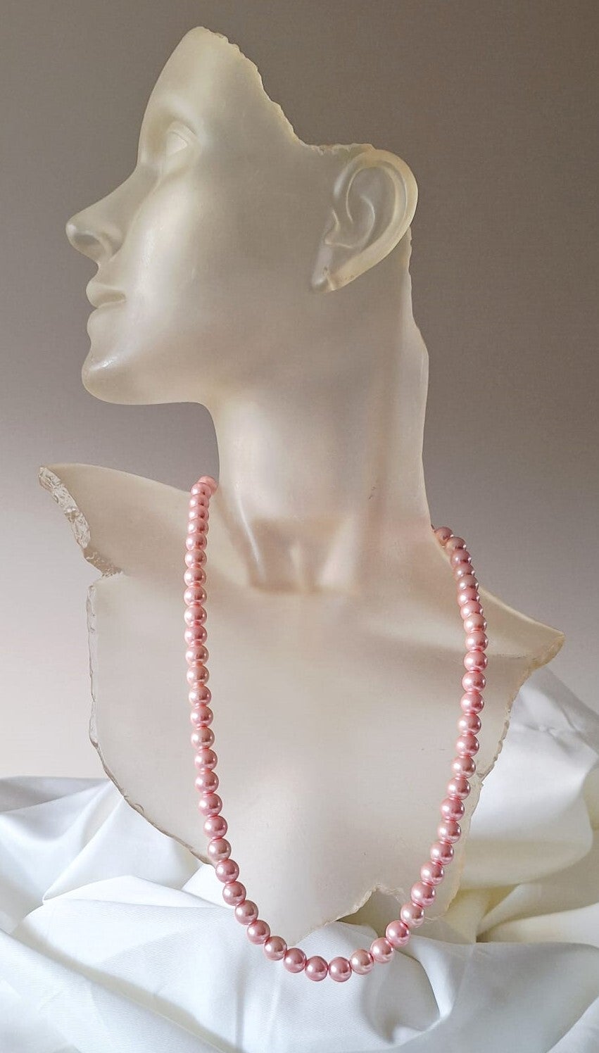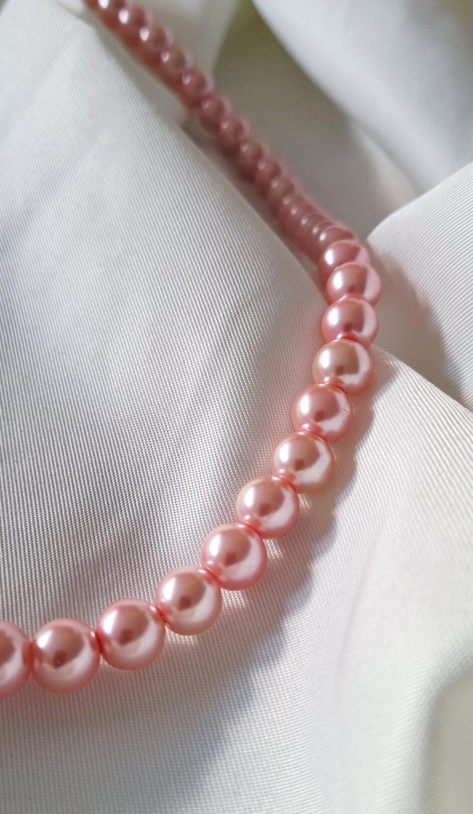 Roselle is een verfijnde, handgemaakte halsketting die zachtheid en elegantie perfect combineert. De ketting bestaat uit 8 mm roze parelkralen met een subtiele glans, zorgvuldig geregen op sterk Beadalon staaldraad voor een professionele en duurzame afwerking.